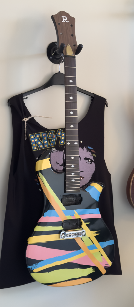 I completely disassembled the Eagle and brought it to my sign maker. While the guitar was being wrapped I bought an Asylum tourshirt and customised it to the one Paul Stanley wore during the Asylum tour.