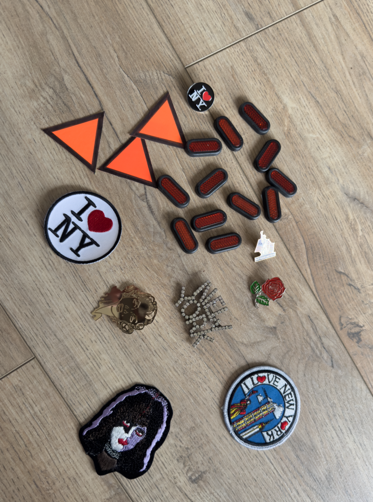 Some of the items ready to be attached to the jacket.